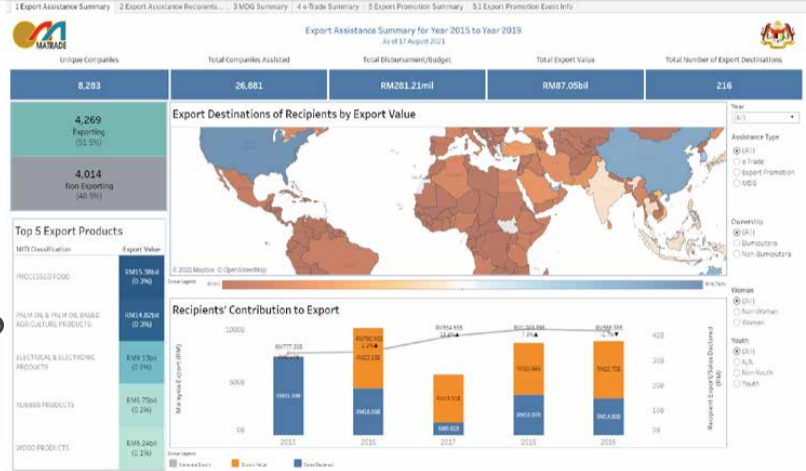 MATRADE provides a variety of export incentives to promote exports of Malaysian products and services. However, the actual impact of the export incentives has to be effectively measured. Currently, most of the export incentives from MATRADE require companies to provide feedbacks via survey to show the outcomes from the activities participated. The inputs provided by the participants are mostly potential / unrealised sales and does not reflect the actual export value. Currently the reports to assess the effectiveness of the export incentives are done manually, and the data are stored in various systems and files.